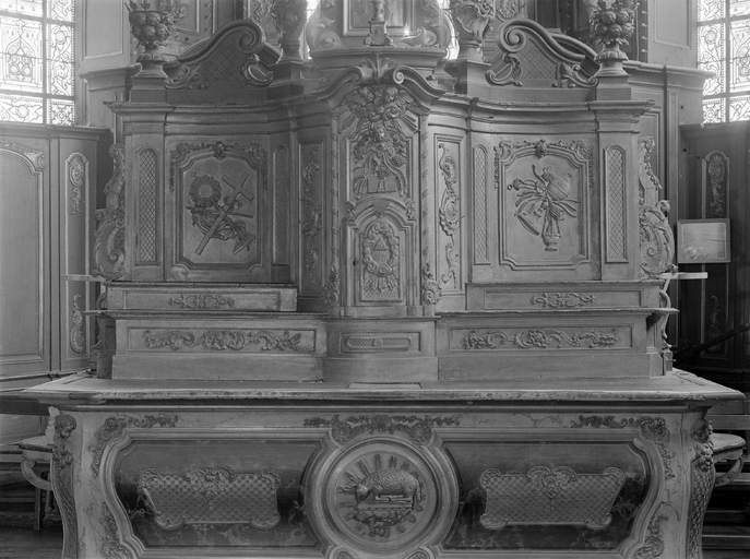 Ensemble du maître-autel : autel, tabernacle, exposition, 2 gradins d'autel, 3 degrés d'autel (Antrain fusionnée en Val-Couesnon en 2019),
