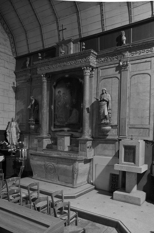 Ensemble de l'autel du Rosaire : autel, retable, tabernacle, 2 gradins d'autel, degré d'autel (La Fontenelle fusionnée en Val-Couesnon en 2019),