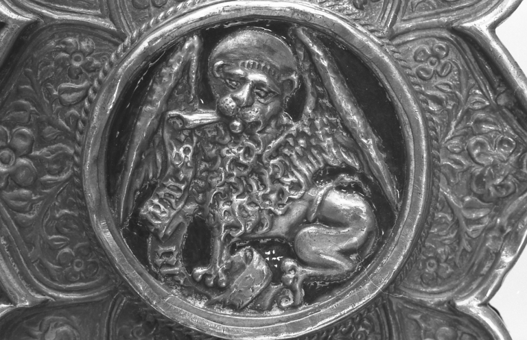 Face postérieure, fleuron droit : lion de saint MarcImmatriculation