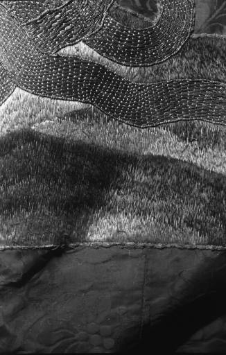 Bannière 1, Christ en croix : détail de la partie inférieureImmatriculation