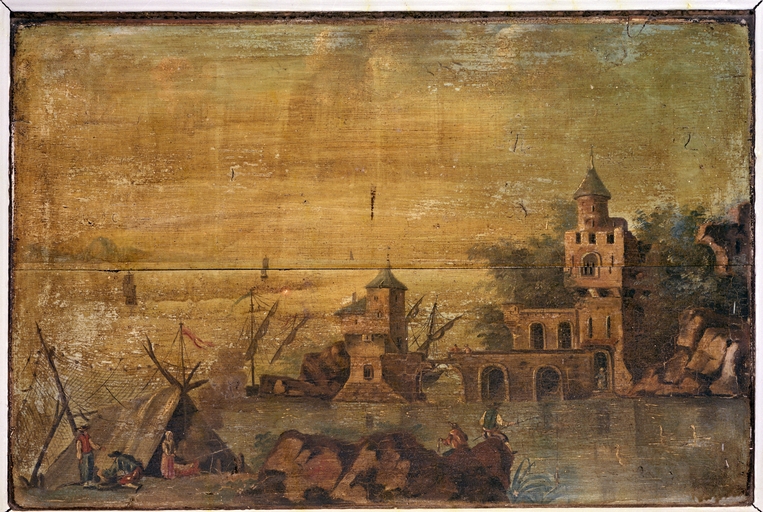 Dessus de porte peint : scène maritime près d'une forteresse défendant la côteImmatriculation