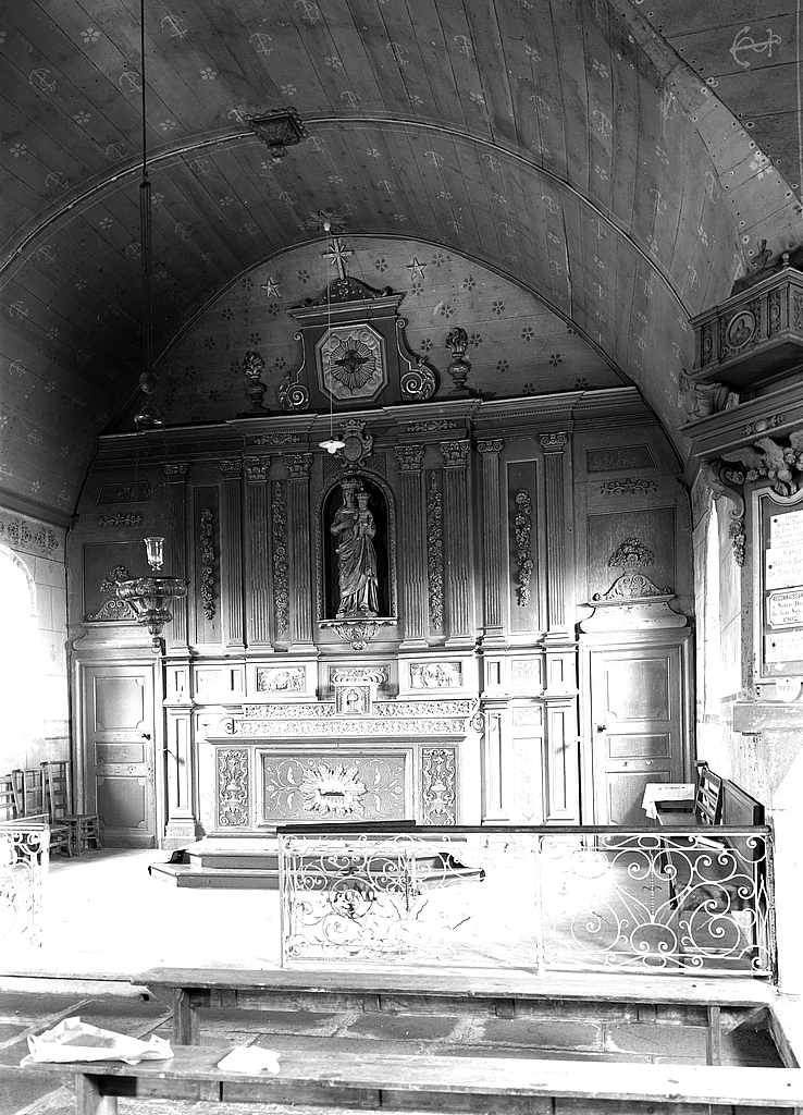 Autel, retable, tabernacle, gradins d'autel (2) (maître-autel, retable architecturé, retable à panneau compartimenté, chapelle Notre-Dame-de-Bon-Voyage ou Notre-Dame-de-Bon-Port (Plogoff),