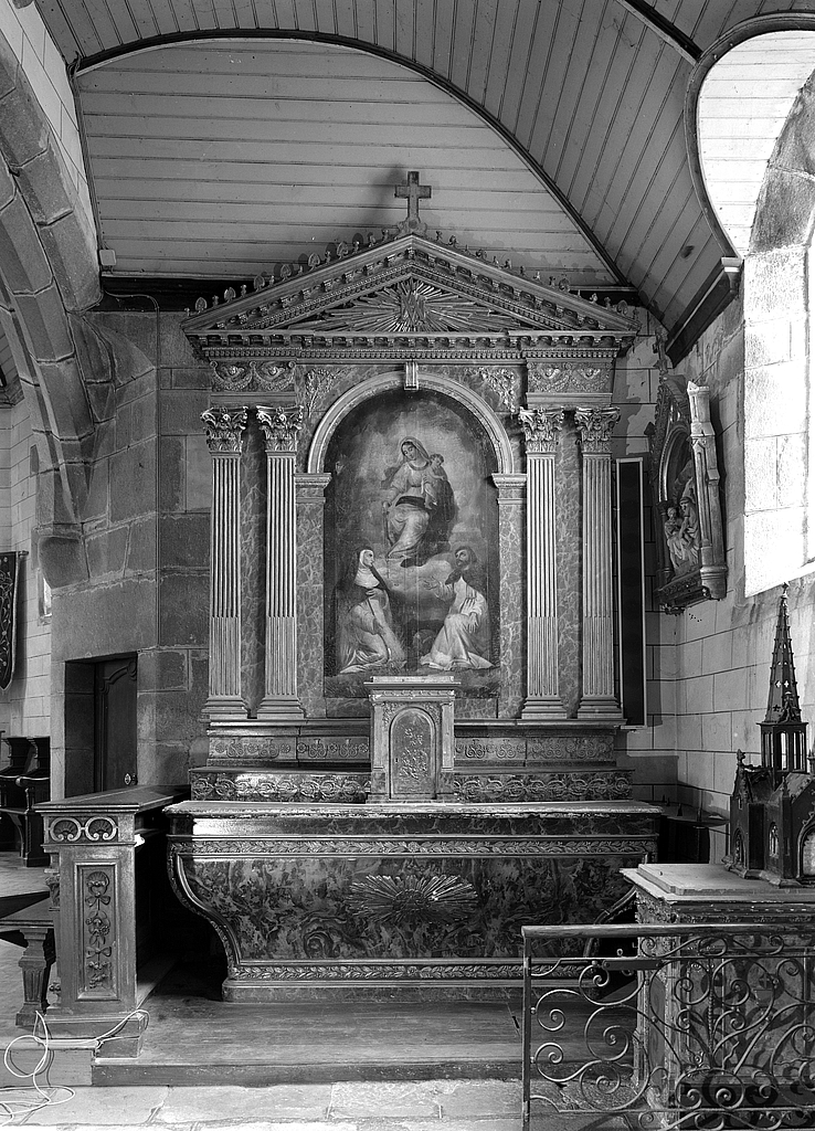 Autel, retable, tabernacle, gradin d'autel (autel secondaire, autel tombeau, retable architecturé) (n° 2), dit de la Vierge, église paroissiale Saint-Clet (Cléden-Cap-Sizun),