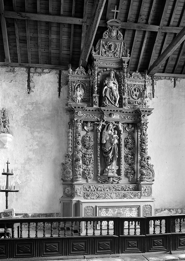 Autel, gradins d'autel (2), retable (autel secondaire, autel tombeau, retable architecturé), de Notre-Dame-de-Grâces, chapelle Saint-Tugen (Primelin),
