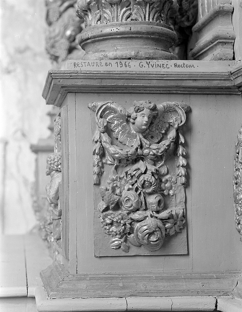 Autel, gradins d'autel (2), retable (autel secondaire, autel tombeau, retable architecturé), de Notre-Dame-de-Grâces, chapelle Saint-Tugen (Primelin),