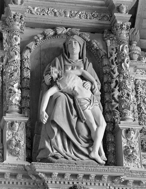 Groupe sculpté (d'applique) : Vierge de Pitié, chapelle Saint-Tugen (Primelin),