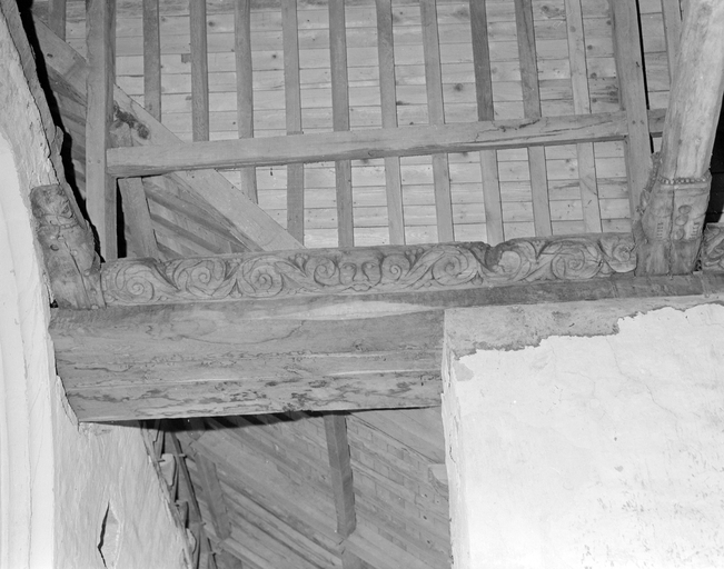 Mur ouest, chapelle nord, entrait, partie sud. (1978)Immatriculation