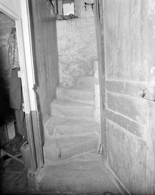 Escalier, détail des premières marches en pierre. (1978)Immatriculation