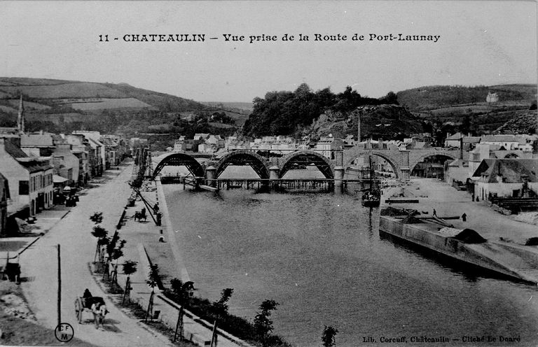 CHATEAULIN - Vue prise de la Route de Port-Launay. Carte postale, Jos Le Doaré, phot., Châteaulin : Corcuff, édit., [1er quart 20e siècle].