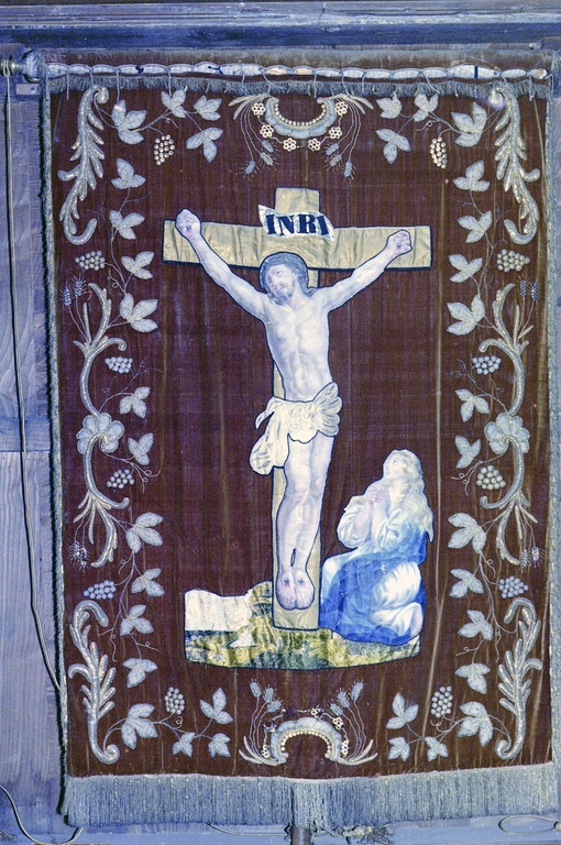 Bannière de procession : Immaculée Conception, Christ en croix et Marie-Madeleine (Tremblay fusionnée en Val-Couesnon en 2019),