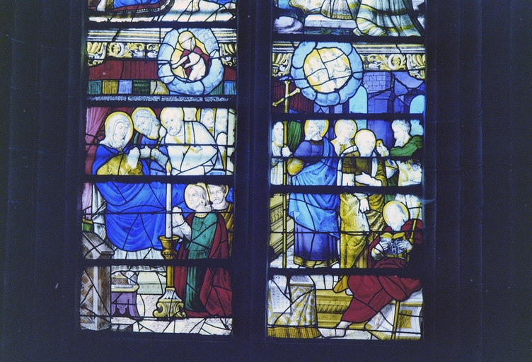 Verrière à personnages de la baie 2 : Scènes de la vie du Christ et de la Vierge (Bazouges-la-Pérouse),