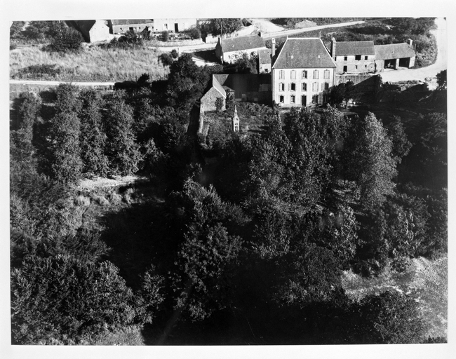 Vue aérienne sud. Chapelle et village de Landugentel. (1979)Immatriculation