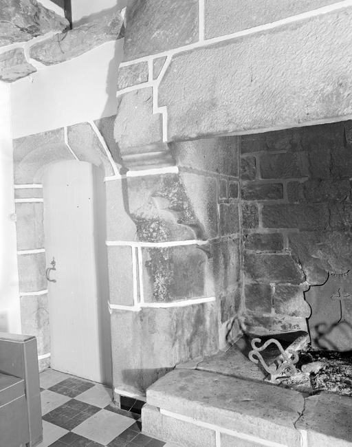 Salle du rez-de-chaussée, profil d'un piédroit de la cheminée. (1979)Immatriculation
