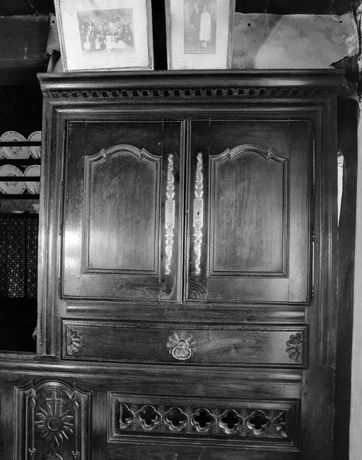 Bank kein (pays bigouden), détail de la petite armoire. (1979)Immatriculation