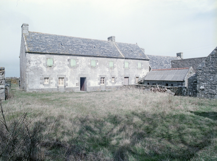 Ferme 1, élévation antérieure de l'alignement principal et crèches à cochons en retour. (1979)Immatriculation