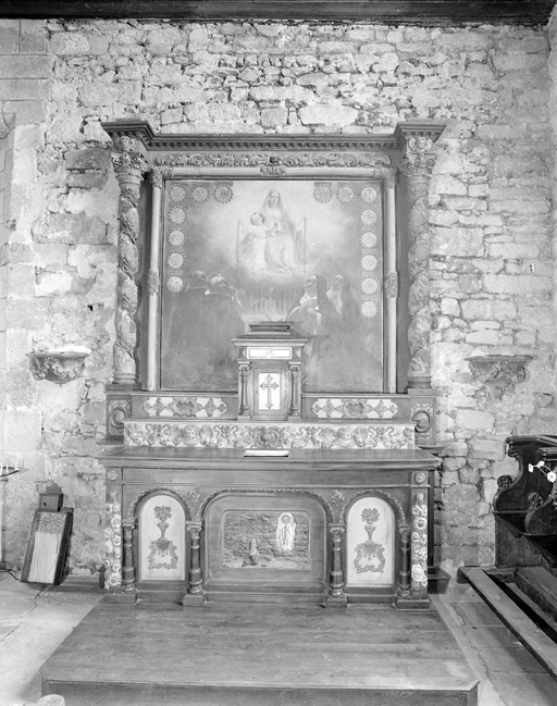 Autel, retable, tabernacle, gradins d'autel (2), tableau, bas-relief (autel secondaire, autel tombeau, retable architecturé) : du rosaire, église paroissiale Saint-Faron (Pouldreuzic),
