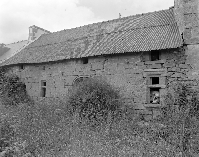 Alignement principal, élévation antérieure de l'ancien logis daté 1727 devenu dépendance agricole. (1979)Immatriculation