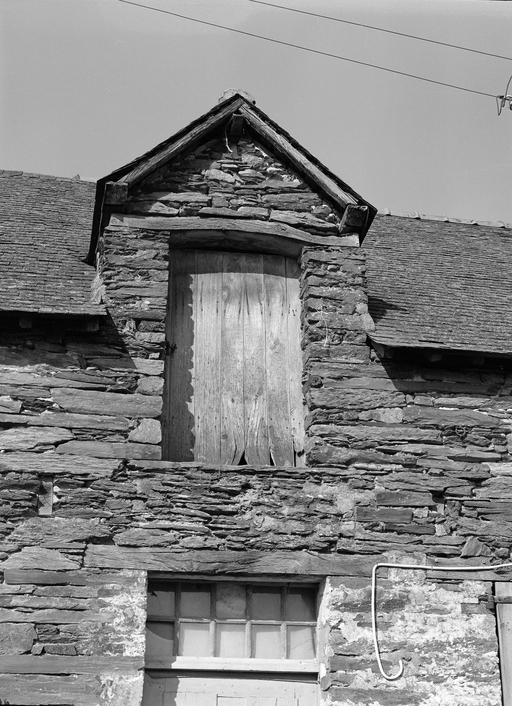 La Claie - Lucarne à pignon maçonné en schiste.Immatriculation