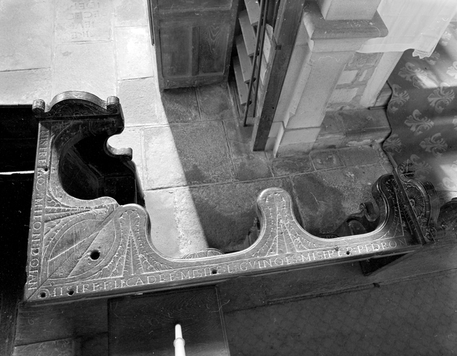 Stalles nord, détail des inscriptions de l'appuiImmatriculation
