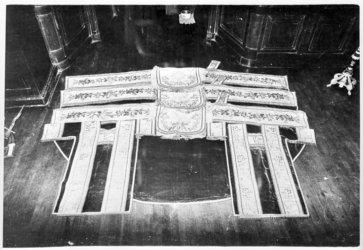 Vêtements liturgiques, ensemble de trois chapes et deux dalmatiques : vue généraleImmatriculation