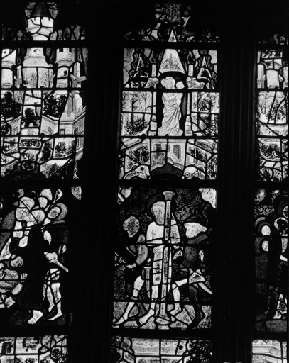 Maîtresse-vitre : Verrière à personnages : Vie de saint Jacques, Vie du Christ (baie 0),