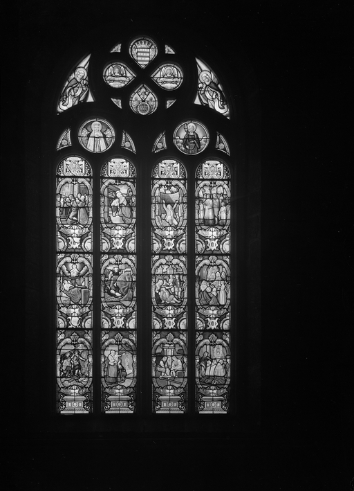 Verrières (8) : vie du Christ (baies 1 à 8), verrière à personnages, église paroissiale Notre-Dame du Roncier (Rostrenen),