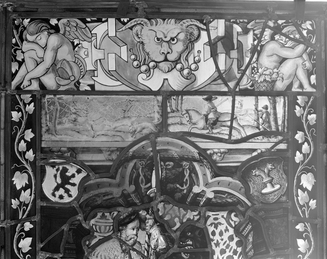 Lanvellec, Rosanbo : château, panneau A, partie supérieure, détail, scène de chasse.Immatriculation