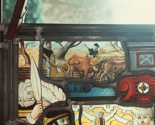 Lanvellec, Rosanbo : château, panneau B, partie supérieure, détail, côté gauche (après restauration)Immatriculation