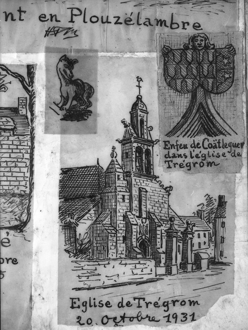 Croquis de l'église et dessin de l'enfeu de Coätleguer dans l'église de Trégrom par Henri Frotier de la Messelière, 20 octobre 1931Immatriculation