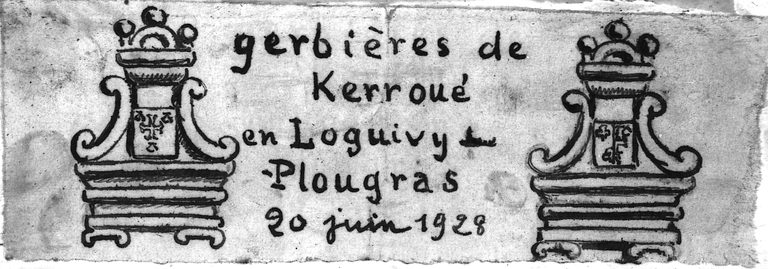Croquis des gerbières du château de Kerroué à Loguivy-Plougras, par Henri Frotier de la Messelière, 21 juin 1928Immatriculation