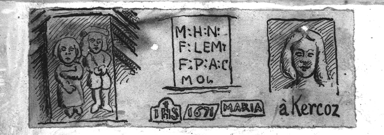Le Vieux-Marché, Kergoz : maison, [Kercoz] croquis de l'inscription par Henri Frotier de la MesselièreImmatriculation