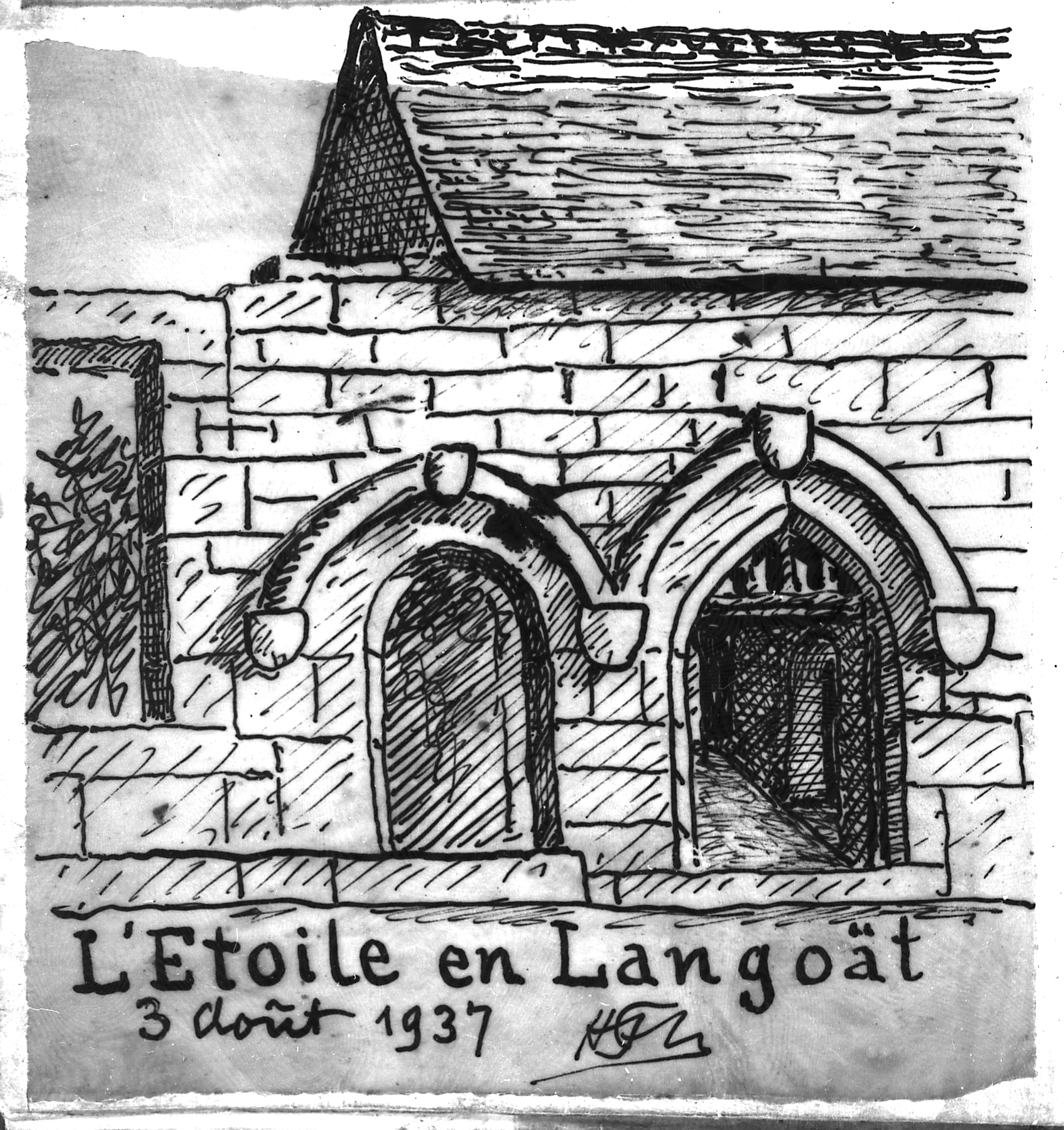 Langoat, L'étoile : manoir, vestiges des portes, croquis de Henri Frotier de la Messelière, 3 août 1937Immatriculation