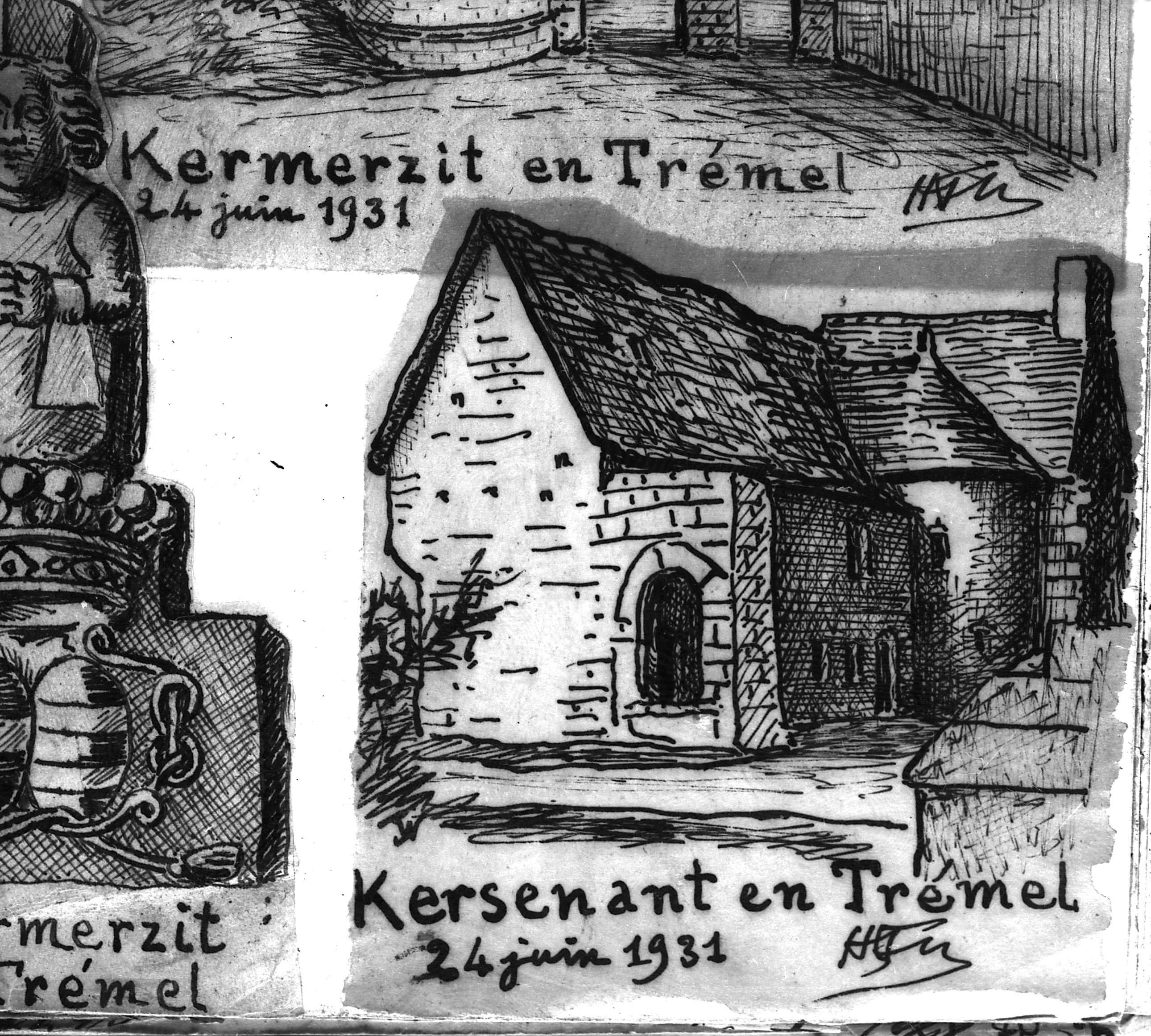 Trémel : manoir de Kersénant, vue générale depuis le sud, croquis par Henri Frotier de la Messelière, 24 juin 1931Immatriculation