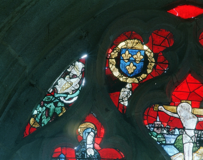 Maîtresse-vitre, détail armes de FranceImmatriculation