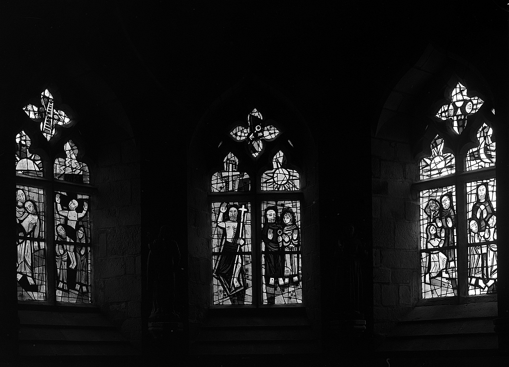 Vue d'ensemble des 3 verrières du choeur.Immatriculation