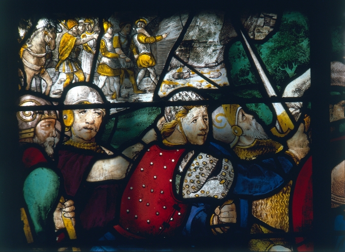 Verrière (verrière figurée) : saint Paul terrassé sur le chemin de Damas (baie 2),