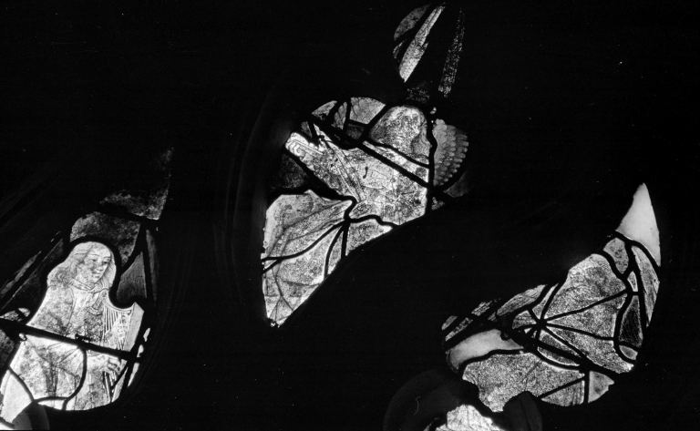 Verrière 1 : Vie de la Vierge, réseau et panneaux BII, DIII et EII.Immatriculation