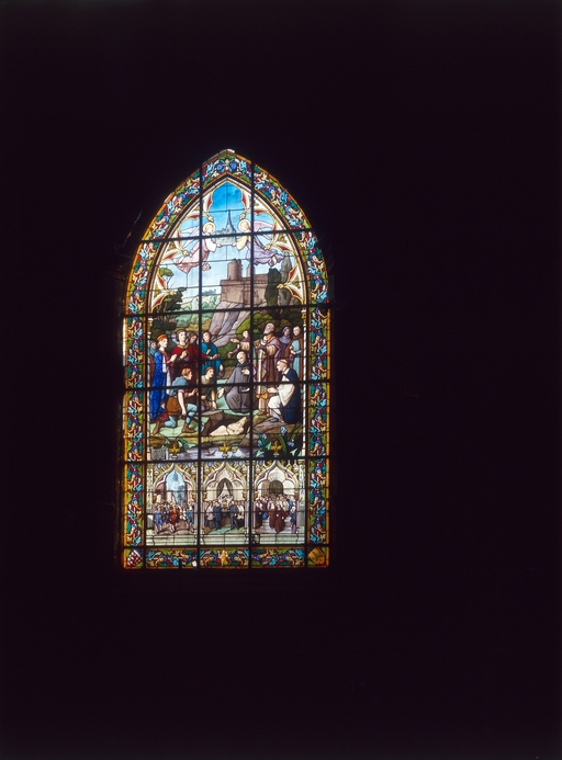 Verrière : découverte de la statue de Notre-Dame des marais au pied du château de Fougères, procession de notre-dame des marais à Fougères, mission de 1900 à Fougères (6), église paroissiale Saint-Sulpice (Fougères),