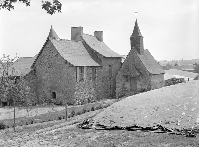 Elévation antérieure, vue générale nord-ouest du logis et de la chapelle.Immatriculation