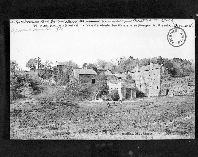 Carte postale ancienne - 716 - Pléchatel (I.-et-V.) - Vue générale des anciennes forges du Plessis-Bardoul.Immatriculation