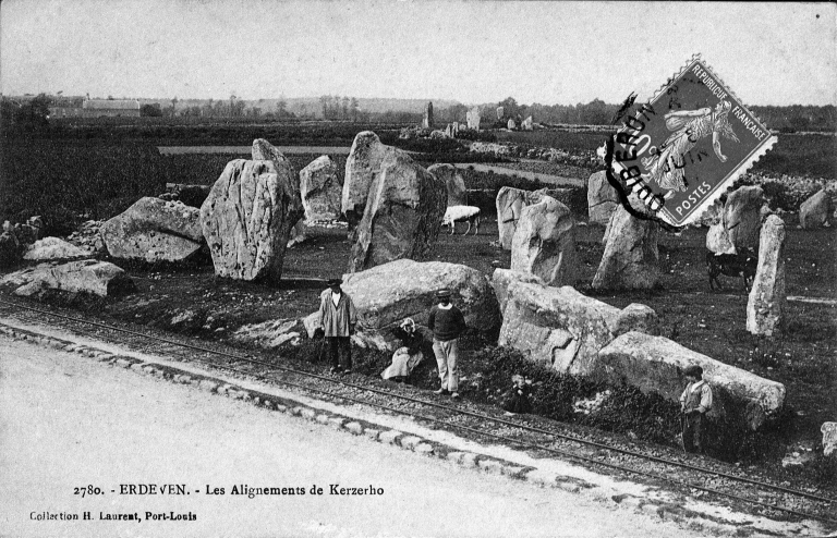 Alignements de Kerzerho. Vue vers 1920. Carte postale ancienne, collection H. Laurent, Port-LouisImmatriculation
