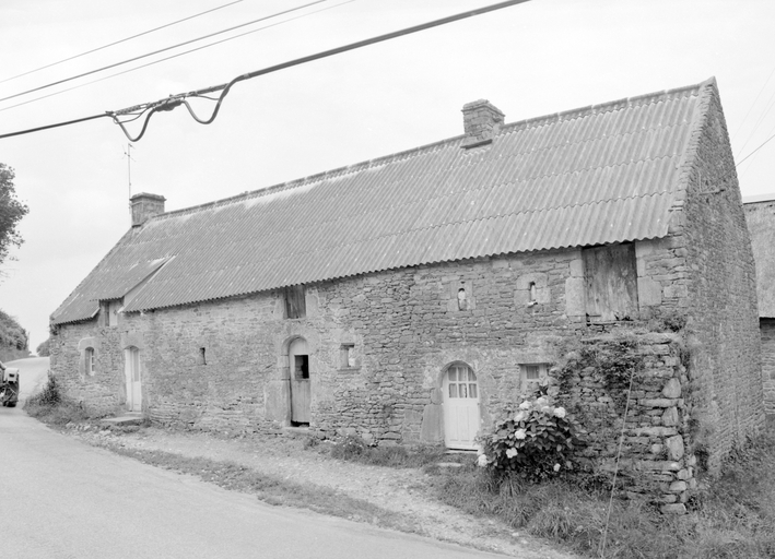 Locmérien des Prés, village, ferme n°4 portant la date de 1819 (partie ouest) escalier extérieur en façade.Immatriculation