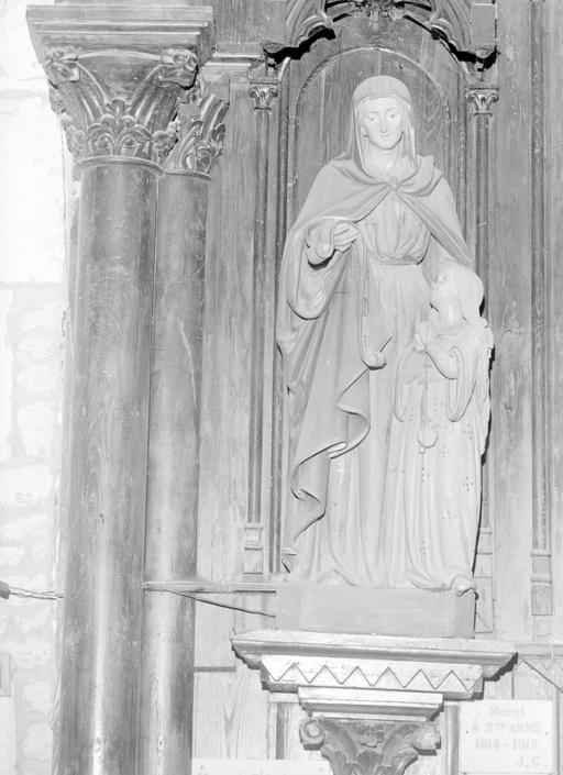 Autel-retable, statue de sainte Anne, vue générale.Immatriculation