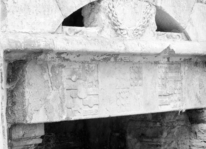 Rez-de-chaussée, corps central, pièce est : cheminée de l'angle nord-ouest : détail linteau.Immatriculation