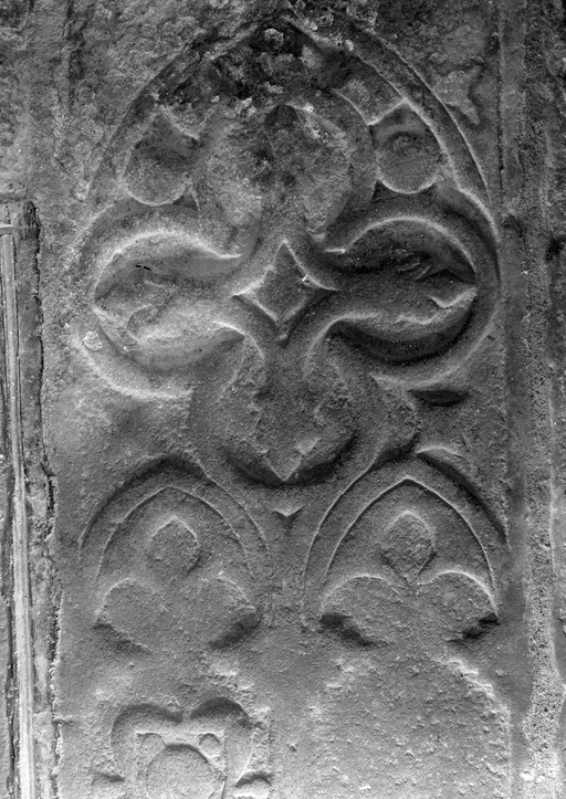 Dalle funéraire n°2, détail de la partie supérieure.Immatriculation