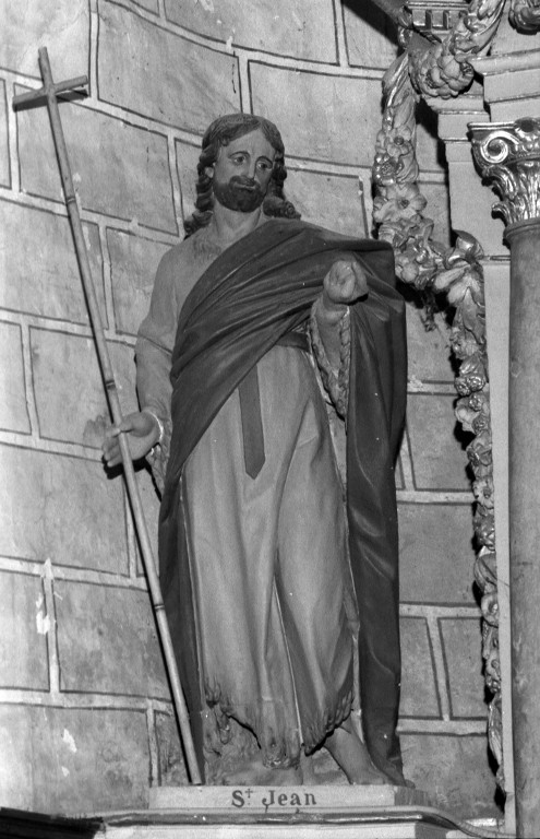 Autel, retable, tabernacle, statue (4), bas-relief (maître-autel, autel tombeau, retable architecturé, grandeur nature, statuette) : saint Jean-Baptiste, saint Augustin, Assomption de la Vierge, anges orants, prieuré Notre-Dame, église paroissiale de chanoines réguliers de Saint-Augustin (Arbrissel),