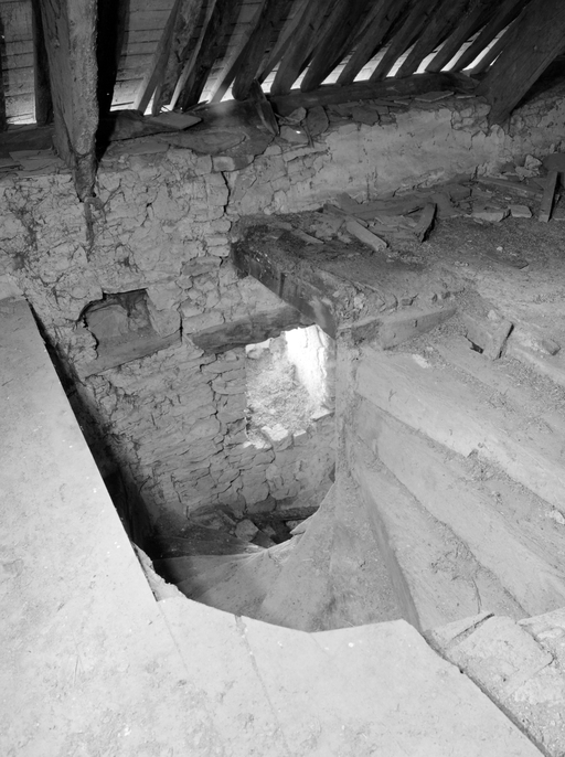Escalier en vis, menant de l'étage au grenier.Immatriculation