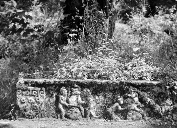 Pierre sculpté provenant de l'ancien manoir.Immatriculation