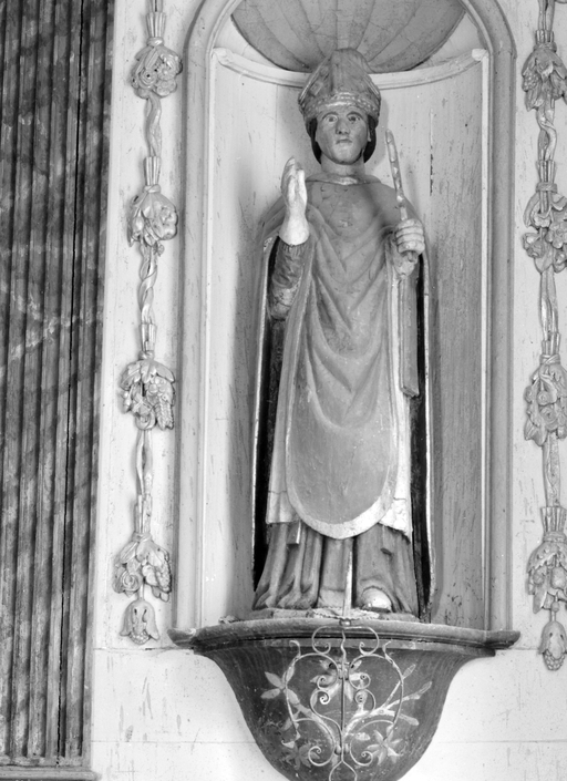 Statue (d'applique, petite nature) : saint évêque, chapelle Notre-Dame de Kerdroguen (Colpo),