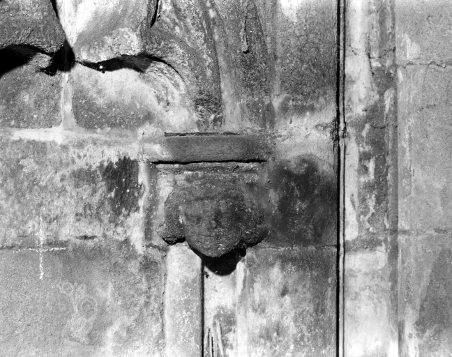 Porche occidental : côté sud, détail : sculpture d'un culot (1er niveau d'arcature)Immatriculation
